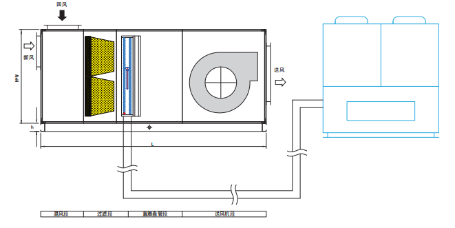 1.標(biāo)準(zhǔn)組合式機(jī)型由混合段,過(guò)濾段,直膨段及送風(fēng)段組成。