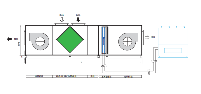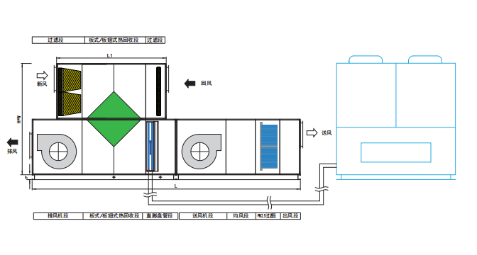 室內(nèi)機(jī)組合形式由標(biāo)準(zhǔn)機(jī)型,板翅式熱回收機(jī)型和轉(zhuǎn)輪式熱回收機(jī)型,并可根據(jù)實(shí)際要求增加加濕段,加熱段,高效過(guò)濾段,消聲段,殺菌段,靜電集塵段等功能段